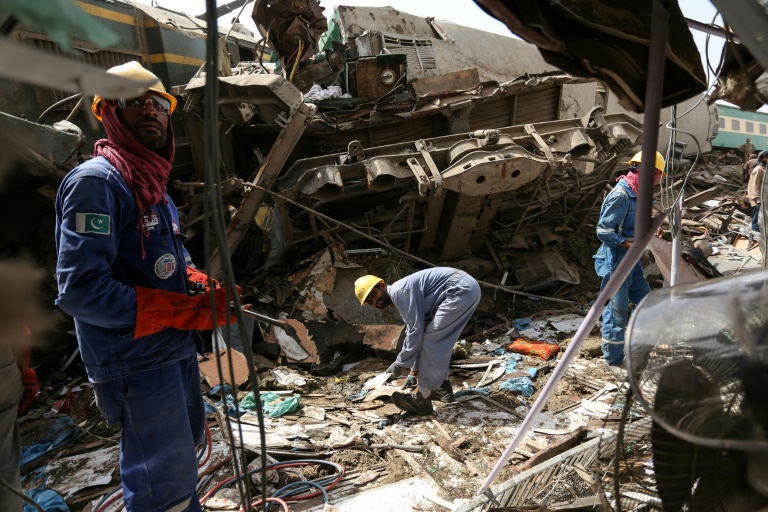 Am Unglücksort waren verstreute Metalltrümmer sowie mehrere umgestürzte grüne Eisenbahnwagen zu sehen. Die Rettungskräfte hatten große Mühe, zu den Eingeschlossenen vorzudringen. „Die Unglücksstelle ist schwierig zu erreichen“, sagte ein Sprecher von Pakistan Railways. Hinzu kamen Probleme mit dem Handy-Empfang.