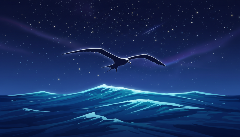 Auch Fregattvögel sind Meister der Effizienz. Sie können wochenlang in der Luft bleiben, ohne zu landen. Um sich auszuruhen, schalten sie oft nur eine Gehirnhälfte ab, während die andere die Navigation übernimmt. Gelegentlich gönnen sie sich sogar einen kompletten Sekundenschlaf mit beiden Hirnhälften, während sie in Aufwinden kreisen.